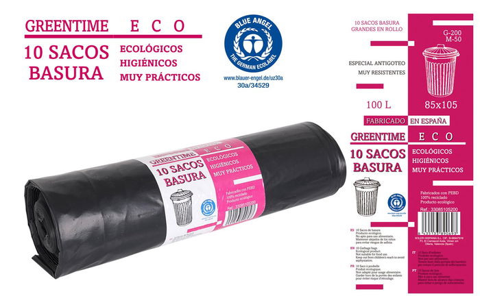 10 Sacos Basura 85X105-G200-100L "Greentime Eco