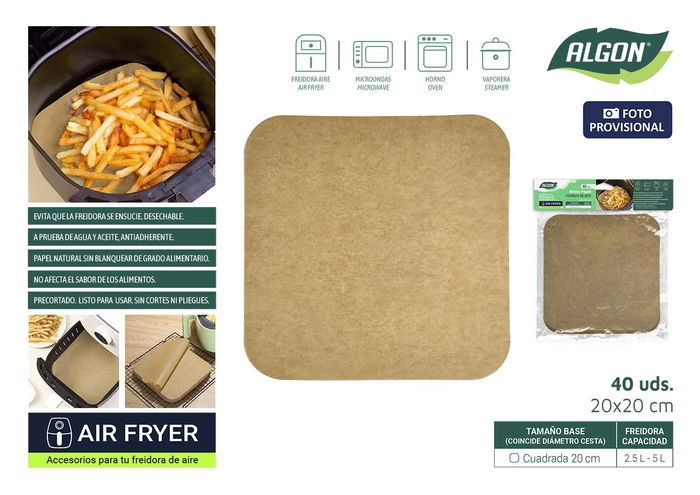 # -144- Set-40 Papel Airfryer Cuadrad.20Cm Algon