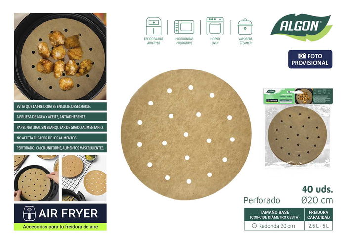 Inde Set 40 Papel Airfryer Perforado Redondo 20 cm (24 Unidades)