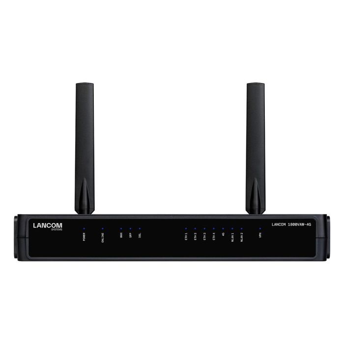 LANCOM 1800VAW-4G (EU), Negro, DSL, LAN, Poder, WAN, WLAN, 1 Ventilador(es), Externo, SMA, 2 dBi