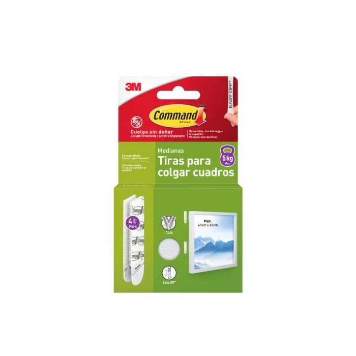 3M Command Tiras Cuelga Cuadros Blancas Medianas para Colgar Objetos Sin Daños