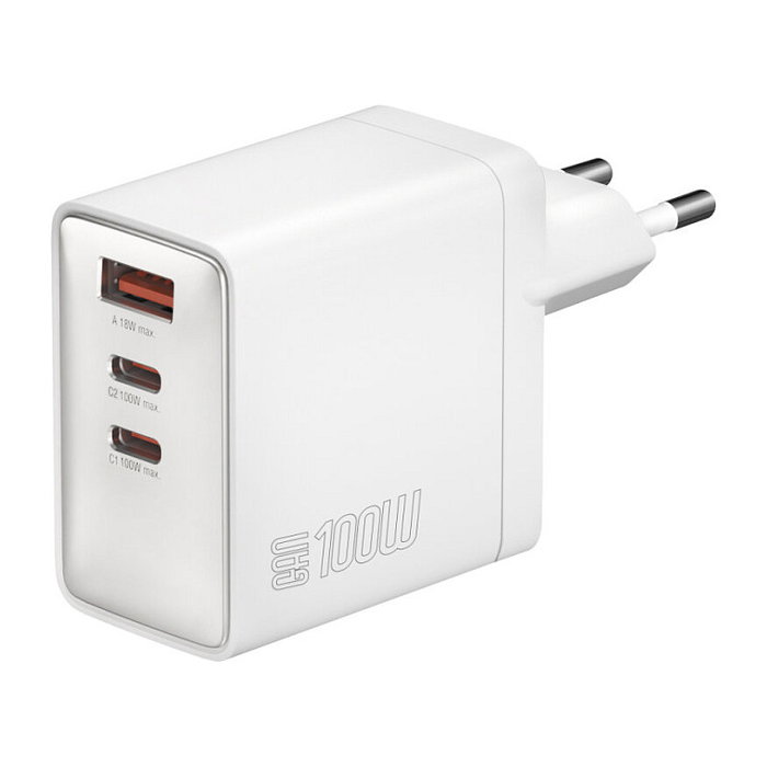 4smarts Netzladegert GaN Pocket 100W Cargador USB, 2 Puertos USB-C y 1 USB-A, Carga Rápida, Blanco, 542100
