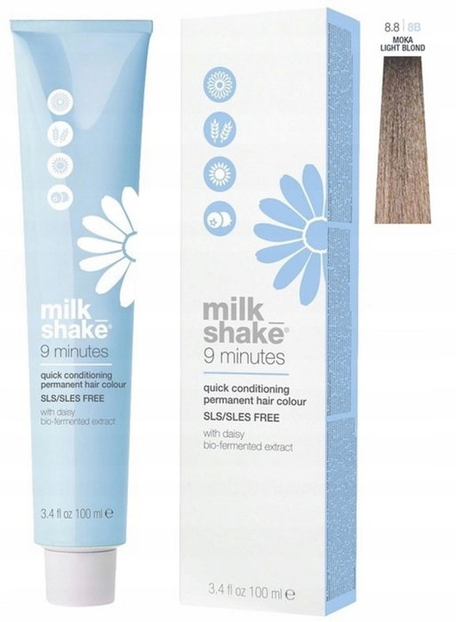 Milk Shake, 9 Minutes, Amino Acid Complex, Tinte permanente para el cabello, 8.8 Moka Light Blond, 100 ml