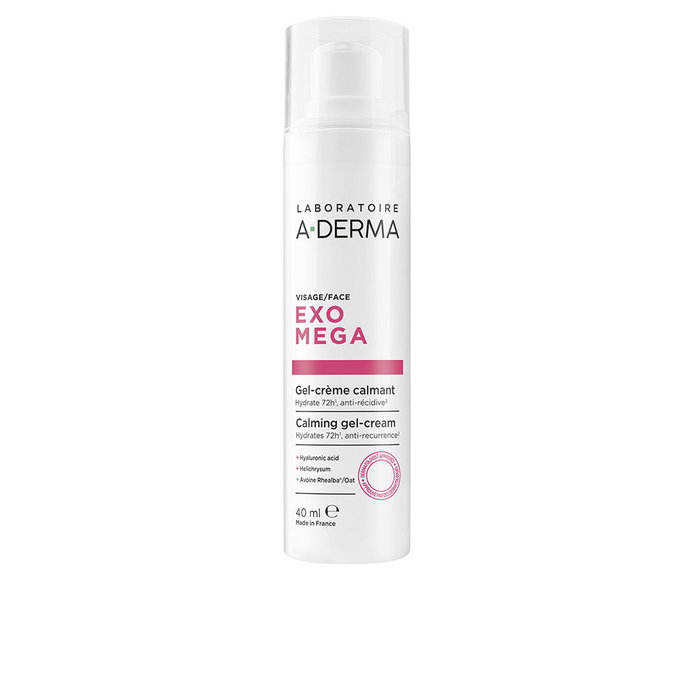 A-DERMA EXOMEGA Gel-Crema Facial Calmante para Piel Atópica - Hidratación 72h, Alivio Inmediato, 95% Ingredientes Naturales, 40 ml