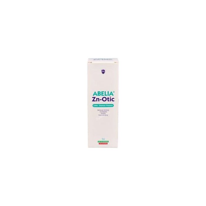 - ABELIAR Zn-Otic: Solucion otica natural de base acuosa, no irritante, con accion secante, que calma, limpia y ayuda a mantener las condiciones fisiologicas de la mucosa del canal auditivo para perros, gatos, animales exoticos y caballos. „h Calma los oidos sensibles y los mantiene secos. „h Con Gluconato de Zinc y Acido Borico, un acido debil con accion secante. „h Con Lisina y Taurina. „h De base acuosa, que facilita la distribucion por todo el conducto. Productos relacionados: - Linea ABELIA - CUTANIAR Zn Gel y Spray.........................................................................................................................................................................................................................................................................................................................................................................................................................................................................................................