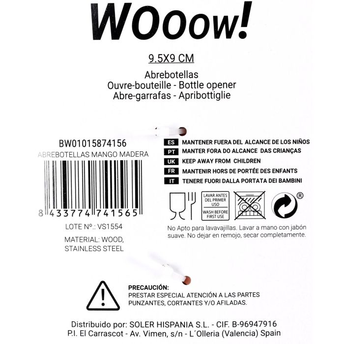Privilege Abrebotellas con Mango de Madera - 9,5 cm ancho x 2 cm alto x 9 cm largo (36 Unidades)