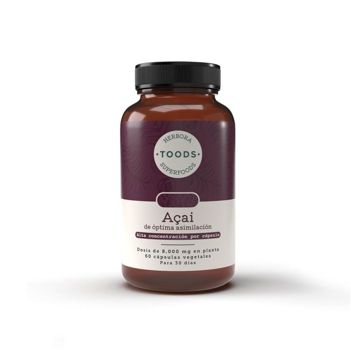Por 2 cápsulas (dosis diaria): ES açai (ratio 8:1) 1.000 mg (8.000 mg cantidad equivalente en planta). ES: extracto seco. Otros ingredientes: agente de carga (celulosa microcristalina) y antiaglomerantes (sales magnésicas de ácidos grasos y dióxido de silicio).