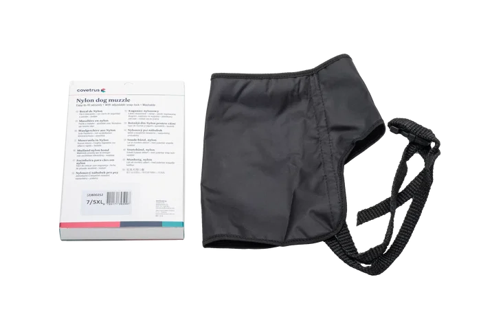 Bozal de nylon para perros de la marca Covetrus. Diseñado específicamente para perros de razas grandes como Rottweilers y Bull Mastiffs. Es fácil de ajustar de forma segura gracias a su sistema con bloqueo ajustable. Fabricado en nylon, es lavable para facilitar su limpieza y mantenimiento. Su diseño es extra largo para garantizar un ajuste cómodo y seguro.