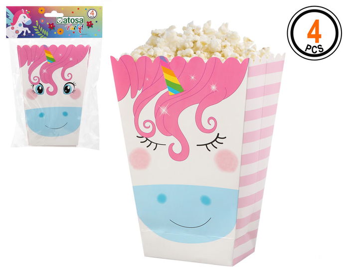 Set 4 cajas palomitas de carton unicornio multicolor