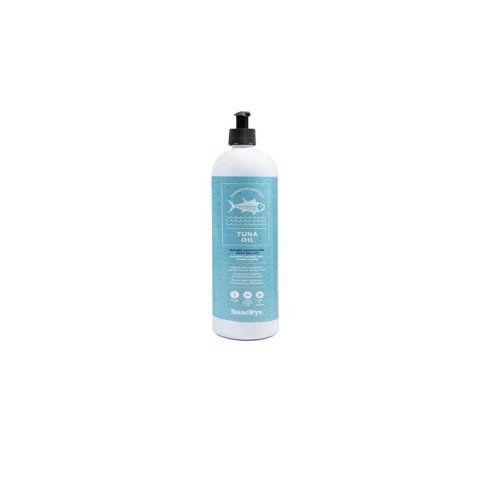 Beneficios del uso de aceite de atún: Contribuye a la mejora de la salud de la piel y el pelo. Mejora la resistencia de uñas y dientes. Fuente de energía para los primeros años de vida. Fortalece el sistema inmunológico. Aporta propiedades antiinflamatorias. Disminuye el desarrollo de alergias cutáneas. Acelera la cicatrización de las heridas. Mejora la palatabilidad de las comidas.