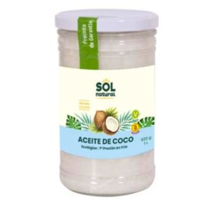SOLNATURAL Aceite de Coco Virgen Bio 1L. Primera Presión en Frío Ecológico Vegano sin Gluten