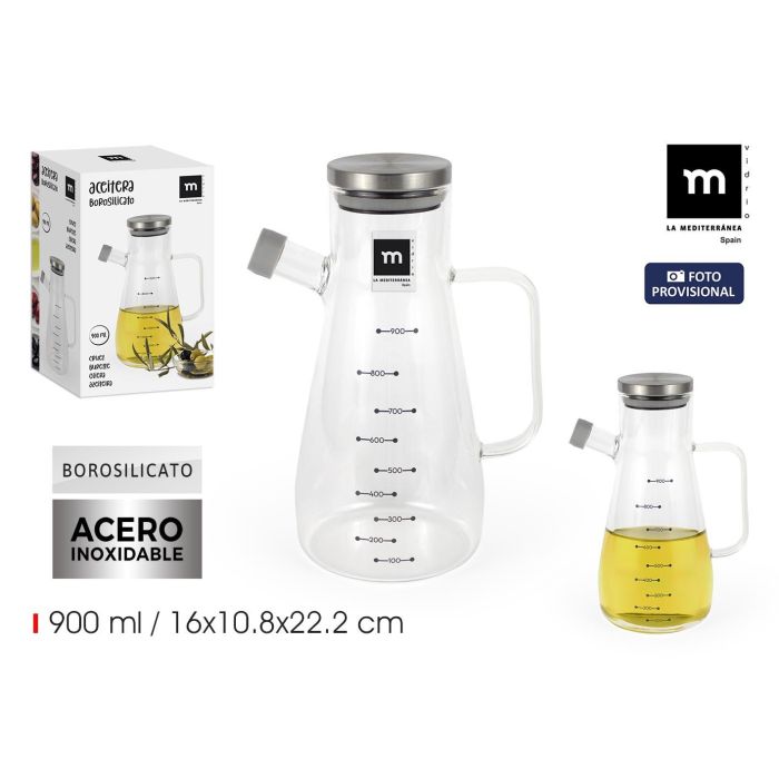Aceitera Borosilicato T/Acero 900Ml La Mediterran