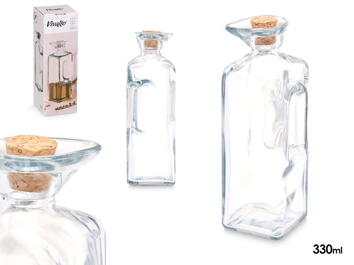 ACEITERA CUADRADA ASA TAPON CORCHO 330 ML
