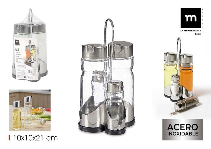 Anna Set Aceitera, Vinagrera y Saleros con Soporte Anna 10 cm (Ancho) x 21 cm (Alto) x 10 cm (Largo) (12 Unidades)