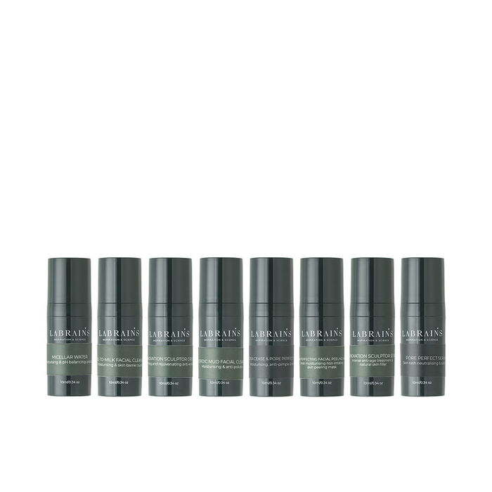 Descubre el set de cosmética facial ACNE-AFFECTED SKIN de Labrains. Diseñado específicamente para la piel acneica o con tendencia al acné, este práctico estuche contiene 8 productos esenciales para una rutina de cuidado facial completa y portátil, ideal para viajes.