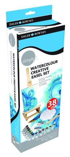 Acuarelas Daler Rowney Simply Easel Set 12Ml Set De 38 (Incluye 12X Tubos Acuarelas 12 Ml, 1X Bloc De Dibujo A5, 4X Lapices De Bocetos, 12X Carboncillos, 1X Caballete Sobremesa, 7X Pinceles Y 1X Paleta)