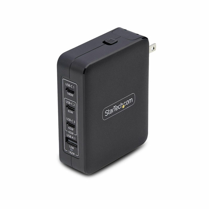 El Startech 3114GCU-WALL-CHARGER es un adaptador de corriente diseñado para ofrecer una solución de carga versátil y potente, ideal para alimentar portátiles y dispositivos USB en un solo cargador compacto y eficiente. Este cargador de pared incorpora tecnología GaN (nitruro de galio) que permite una alta potencia máxima de 140 W con soporte para Power Delivery 3.1, distribuidos en tres puertos USB-C capaces de suministrar hasta 140 W en total, junto con un puerto USB-A adicional con salida máxima de 12 W, proporcionando compatibilidad para cargar simultáneamente portátiles, tablets y smartphones. Presenta unas dimensiones compactas de 9,6 cm x 3,08 cm x 7,6 cm y un peso ligero de 358 g, facilitando su transporte y uso en viajes. Para adaptarse a necesidades internacionales, incluye cuatro tipos intercambiables de enchufe (NEMA 1-15P para Norteamérica, BS 1363P para Reino Unido, CEE 7/16P para Europa y AS/NZS 3112 para Australia), junto con una bolsa de viaje, garantizando una compatibilidad segura y sin necesidad de adaptadores adicionales en regiones con normativas eléctricas distintas, con soporte para entrada de voltaje de 100 a 240 V. Fabricado en plástico negro, su carcasa está diseñada para optimizar la disipación de calor, asegurando un funcionamiento frío y fiable durante el uso continuo, mejorado por la corrección activa del factor de potencia (PF >0,99) que contribuye a la eficiencia energética y rendimiento sostenible. Este adaptador cumple rigurosas normativas de seguridad, con certificaciones TÜV (IEC 62368-1) y FCC/ICES EMC, ofreciendo protección integrada contra sobreintensidad, sobrevoltaje y sobrecalentamiento, además de cumplir con el estándar de eficiencia energética de nivel VI del DOE. Su diseño universal y funcional se adapta de forma práctica a las demandas tanto de usuarios domésticos como profesionales que requieren un cargador compacto, seguro y eficiente que pueda dar servicio a múltiples dispositivos con conectividad USB-C y USB-A aprovechando la alta potencia del PD 3.1. En definitiva, el Startech 3114GCU-WALL-CHARGER representa una opción técnicamente avanzada y fiable para quienes necesitan un cargador internacional compacto con capacidades de carga rápida y protección integral.