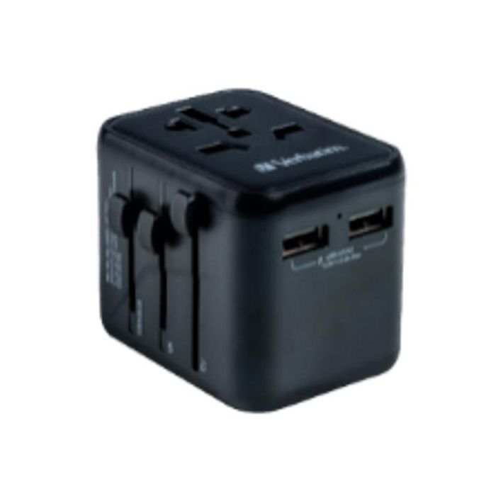 Verbatim Adaptador Universal de Viaje con 2 Puertos USB-A, Cargador Mundial para Más de 180 Países, Enchufes UE/Reino Unido/EE. UU./AUS, 12W