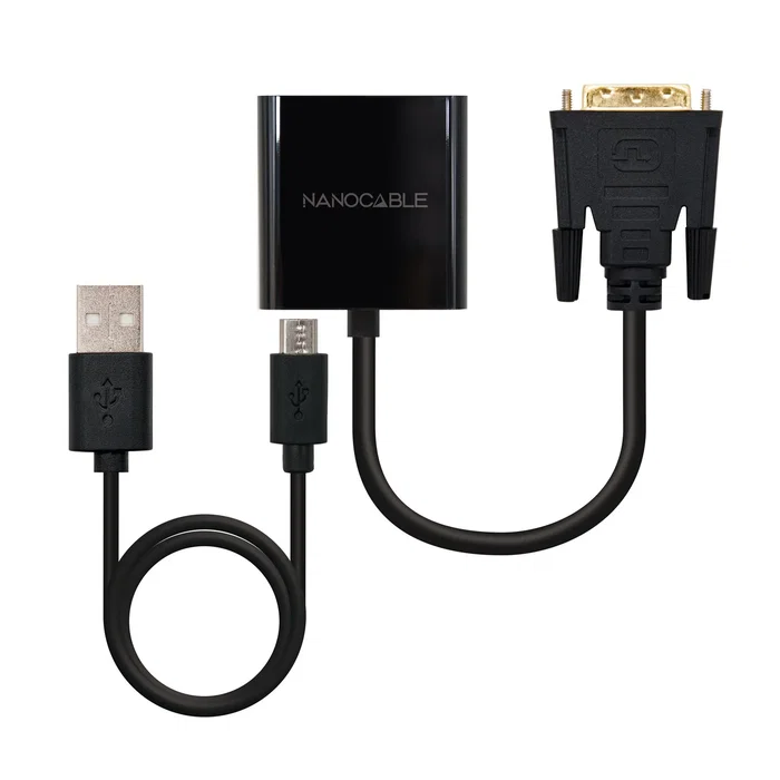Nanocable Conversor DVI 24+1/m A VGA HDB15/h, Negro, 10 cm, 0,1 m, 1080p, Negro, RoHS, 120 mm, 15 mm