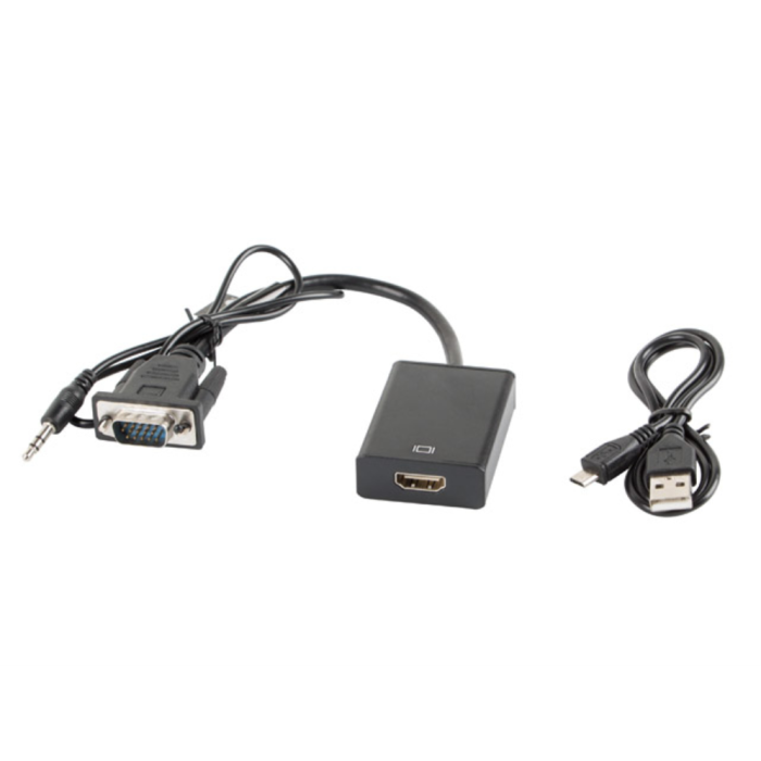 Lanberg Adaptador VGA Macho a HDMI Hembra con Audio 3.5 mm Jack, Soporte Full HD 1080p