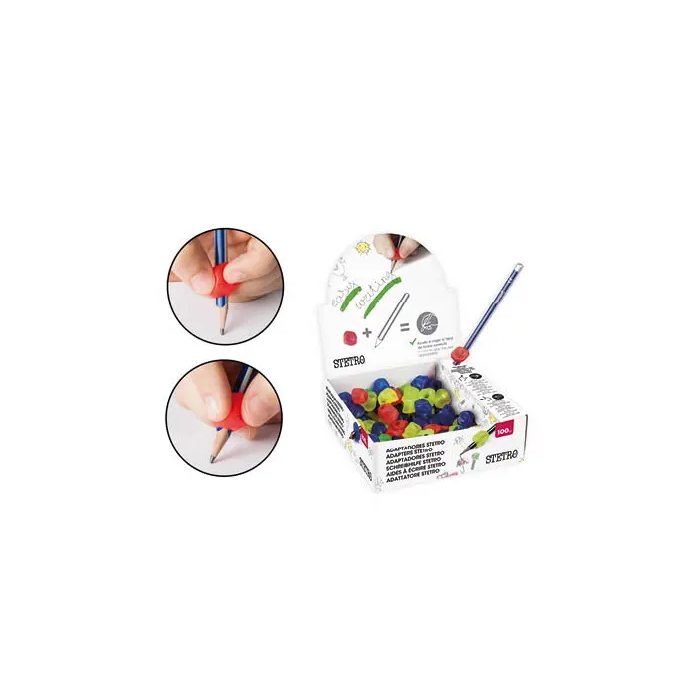 Liderpapel Adaptador Lápiz Educativo para Niños Zurdo y Diestro, Colores Surtidos, Caja de 100 Unidades