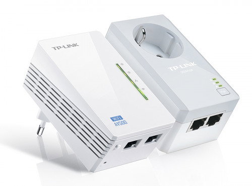 TP-LINK AV500. Rango máximo de transferencia de datos: 500 Mbit/s, Estándares de red: IEEE 1901,IEEE 802.11b,IEEE 802.11g,IEEE 802.11n,IEEE 802.3,IEEE 802.3u, Tipo de interfaz Ethernet LAN: Ethernet rápido. Consumo energético: 6 W. Color del producto: Blanco, Indicadores LED: LAN, PLC, Poder, WLAN, Certificación: CE, FCC. Ancho: 95 mm, Profundidad: 58 mm, Altura: 42 mm. Cantidad por paquete: 2 pieza(s), Cables incluidos: LAN (RJ-45)