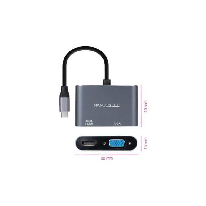 - Conversor USB-C macho a HDMI hembra y VGA hembra