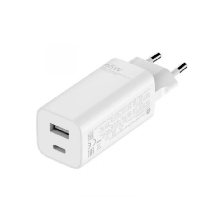 Xiaomi Mi Cargador Rápido 65W Gan con 2 Puertos (Tipo A + Tipo C) Blanco + Cable USB-C a USB-C - BHR5515GL