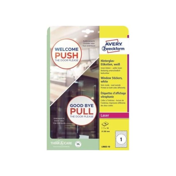 Avery L9003-10 Adhesivos de Papel para Ventanas 200 mm, 10 Hojas por Paquete