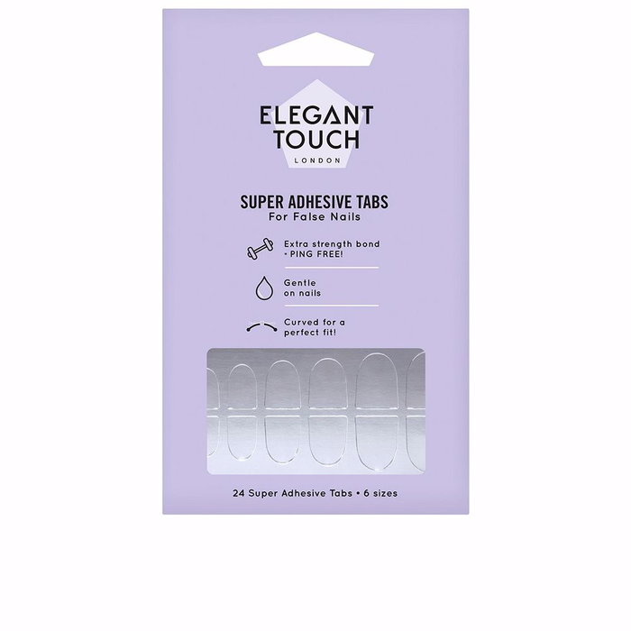 Elegant Touch SUPER ADHESIVE Tabs - Adhesivos para Uñas Postizas, Fijación Súper Fuerte hasta 7 Días, Contiene 24 adhesivos de 6 tamaños diferentes