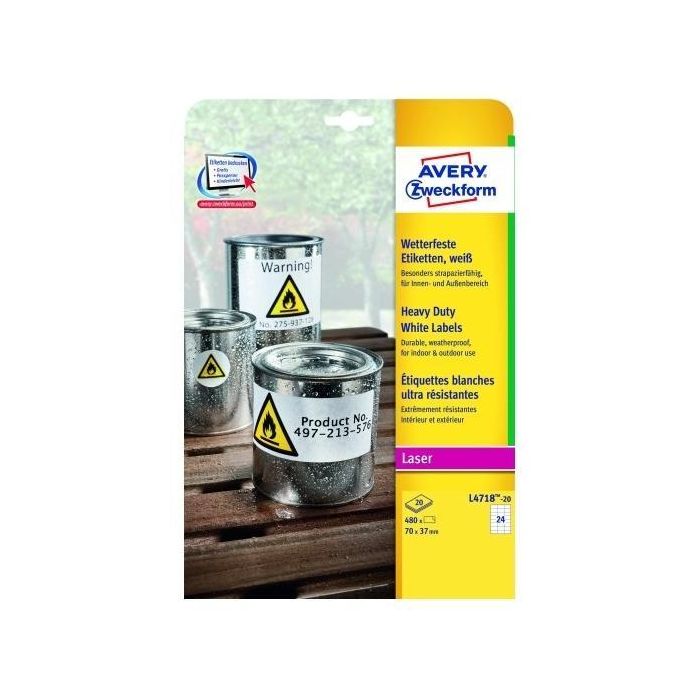 Avery Etiquetas Adhesivas Extra Resistentes 70x37 mm Láser Polyester Blanco