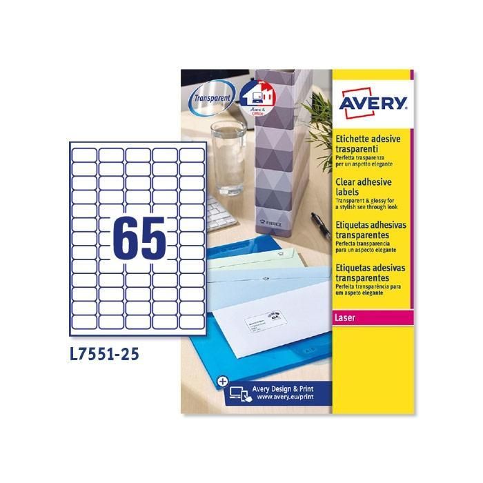 Avery Etiquetas Adhesivas Mini 38,1x21,2 Láser Transparentes 65 X 25H