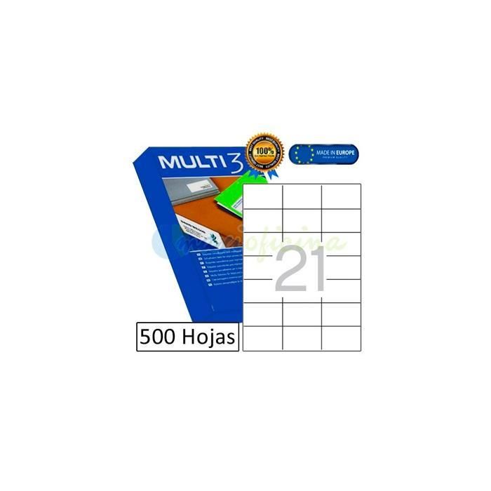 Multi-3 Etiquetas Adhesivas C-Rectos 21 70x42,4 mm Inkjet-Láser, Rectas, 21X500H, Blancas