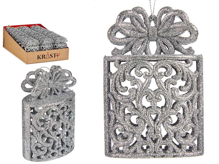 ADORNO ARBOL NAVIDAD CAJA REGALO PLATA