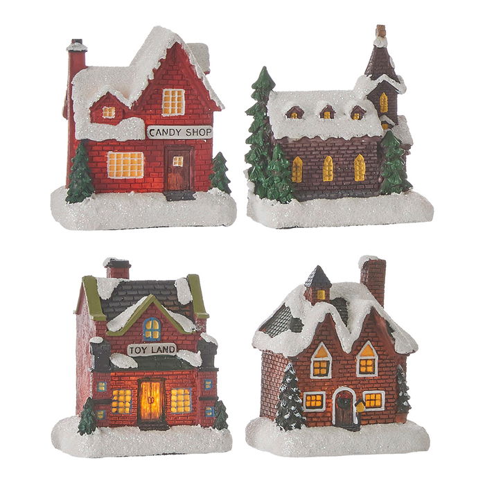 Casita de navidad modelos surtidos. 10x5,5x8,5cm (ancho/fondo/alto). funciona con 2 pilas aaa (no incluidas).