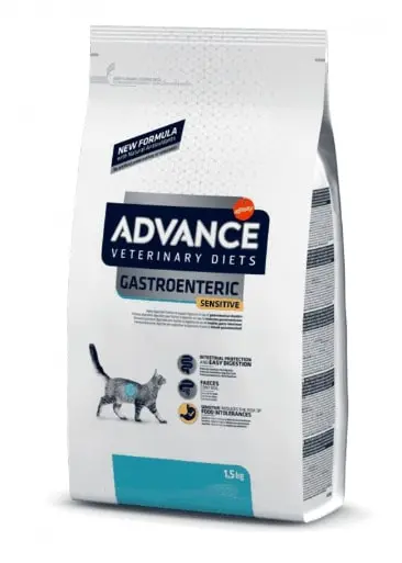Advance Vet Feline Adult Gastro Sensitive es un pienso seco desarrollado específicamente para gatos adultos con sensibilidades digestivas. Formulado por la marca Affinity, este alimento ayuda a mantener la salud gastrointestinal de tu felino. Presentado en un práctico envase de 1,5 kg, está diseñado para proporcionar una nutrición completa y equilibrada, favoreciendo una digestión fácil y un bienestar óptimo.
