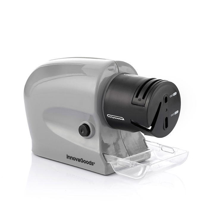 Afilador eléctrico multiusos 6 en 1 esharp v0103410 innovagoods ideal para afilar con facilidad y eficacia varios tipos de cuchillos, tijeras y herramientas logrando un resultado profesional. por su original diseño multifunción 6 en 1, es apto para cuchillos lisos, cuchillos dentados, tijeras, destornilladores y herramientas de precisión, utensilios grandes y herramientas domésticas. la piedra de afilado resistente y duradera gira a gran velocidad, proporcionando un afilado rápido y óptimo. dispone de pies antideslizantes para una mayor sujeción y de una tapa extraíble con varias ranuras guía para la colocación de cada utensilio en el ángulo perfecto que permite obtener el mejor afilado. la tapa con ranuras se extrae para afilar determinados utensilios más grandes directamente sobre la piedra de afilado (como tijeras de podar, etc.). este afilador portátil no necesita cables ni enchufes, ya que funciona con pilas (4xaa, no incluidas), lo que facilita su uso cómodo y sencillo en cualquier momento y lugar. además, al ser ligero y compacto ocupa poco espacio al guardarlo. incluye instrucciones de uso y una bandeja para recoger las virutas y partículas de metal desprendidas en el proceso de afilado.