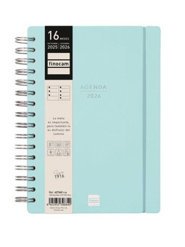 Agenda de diseño sofisticado y elegante, con tapa dura de tacto suave y detalles de estampación metálica. Con espiral doble y goma elástica. Papel extraopaco que permite escribir sin transparencia ni que la tinta traspase. Los contenidos de esta agenda te ayudarán a llevar una vida equilibrada y armónica, porque se centran en tu tiempo y en tus prioridades (salud, espiritualidad, familia y amigos, etc.). Con ella podrás realizarte a nivel personal y cumplir tus proyectos, al mismo tiempo que disfrutarás organizando tu tiempo. El diseño interior incluye espacios para destacar lo importante de la semana, objetivos, reflexiones y notas. La agenda contiene información útil y de interés en la anualidad y otros contenidos extra orientados a la organización personal. También incorpora un set de adhesivos diseñados para que te puedas organizar en todos los aspectos. Sin duda, esta es la agenda ideal para focalizarte en ti, en tus prioridades y en tu presente, porque más allá de llegar a la meta y de alcanzar los objetivos, es importante que disfrutes del camino. Formato similar a DIN A5; con las ventajas de una agenda portable y una de sobremesa. Duración: Septiembre 2025 - Diciembre 2026 (16 meses). Interior: Semana Vista Horizontal Con indicación en la anualidad de los festivos de España.Idioma del artículo: español. Formato: E10 - 155x212 mm. 95 g/m². Papel FSC® ecológico libre de cloro elemental y de ácido, fabricado mediante la utilización de energías limpias, con el 100% de celulosa controlada, y bajo los certificados de calidad ISO9001:2015 y medio ambiente ISO14001:2015, cumpliendo así la normativa ISO9706 sobre la permanencia del papel. El Forest Stewardship Council® (FSC®) es una organización no gubernamental, independiente, sin ánimo de lucro, establecida para promover una gestión forestal ambientalmente responsable, socialmente beneficiosa y económicamente viable en los bosques de todo el mundo.