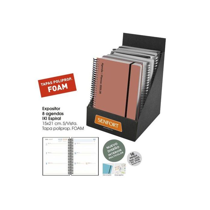 Agenda Anual (2025-26) Senfort 16 Meses Iki Foam Espiral Tapa Pp Con Goma 155X215 S/V Surtido Expositor De 8