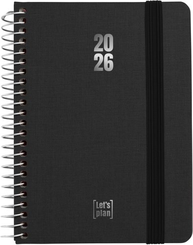 Agenda Anual (2026) Grafoplas Fancy Espiral Tapa Extradura Con Goma A6 150X120 S/V Negro