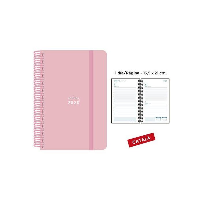 Agenda Anual (2026) Senfort Catalan Pastel Espiral Tapa Pp Con Goma 135X210 D/P Rosa