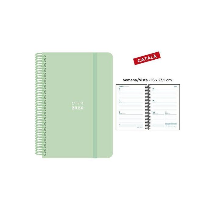 Agenda Anual (2026) Senfort Catalan Pastel Espiral Tapa Pp Con Goma 160X235 S/V Verd