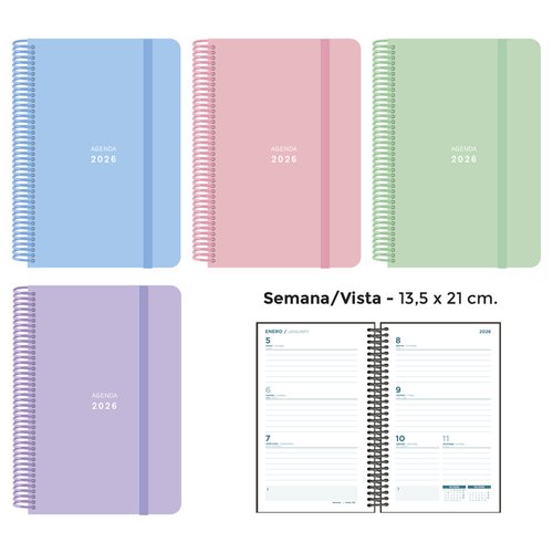 Agenda Anual (2026) Senfort Pastel Espiral Tapa Pp Con Goma 135X210 S/V Surtido De 4