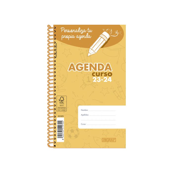 Agenda Escolar 2023-2024 Personalizable 8º Dia/Pagina Tapa Polipropileno Ingraf 351970