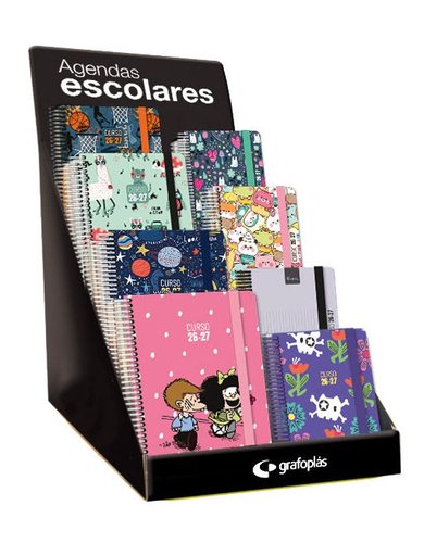 AGENDA ESCOLAR (2026-27) GRAFOPLAS ESPIRAL tapa EXTRA con GOMA A5/A6 SURTIDO EXPOSITOR DE 60 15x A5 2D/P 45x A6 D/P