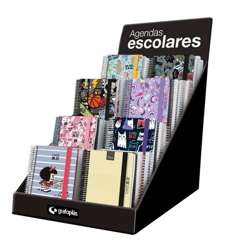 AGENDA ESCOLAR (2026-27) GRAFOPLAS ESPIRAL tapa EXTRA con GOMA A6 D/P SURTIDO EXPOSITOR DE 60