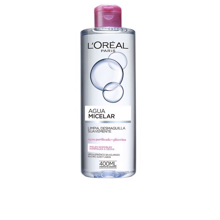 Agua micelar suave de L'Oréal Paris, especialmente formulada para pieles secas y sensibles. Descubre la frescura y limpieza que ofrece este producto para desmaquillar y limpiar el rostro, ojos y labios en un solo paso, facilitando tu rutina diaria de belleza.