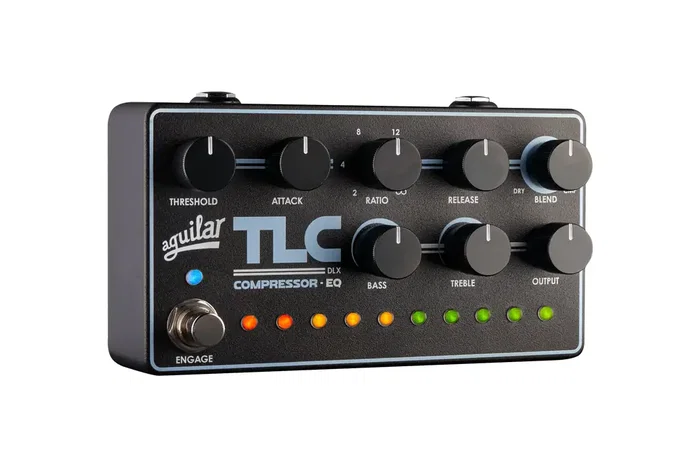 El TLC DLX Compressor EQ es el compresor para bajo más completo de Aguilar hasta la fecha, combinando control dinámico profesional con EQ musical en un formato compacto, ideal para pedaleras. Basado en la base del TLC Compressor original, el DLX amplía las opciones de control para dar a los bajistas comando total sobre la dinámica, la sensación y la consistencia, al tiempo que añade un amplio y musical modelado del tono, inspirado en el clásico circuito DB 925 de Aguilar. Diseñado para escenario y estudio, el TLC DLX ofrece compresión transparente, monitoreo visual intuitivo y realce de tono que se siente natural bajo los dedos y se integra sin esfuerzo en la mezcla. Compresión estilo estudio con control total EQ integrada de Graves y Agudos para modelado musical del tono Medición LED de reducción de ganancia para retroalimentación visual instantánea El TLC DLX está diseñado para bajistas que buscan más que una simple compresión ?on/off?. Sigue un flujo de trabajo de estudio familiar: primero controlar la dinámica, luego mejorar el tono, llevando la sensación y flexibilidad de un canal de estudio directamente a tu pedalera. Ya sea para nivelar sutilmente, añadir pegada o controlar picos firmes, el TLC DLX ofrece control preciso mientras preserva el carácter natural de tu instrumento.