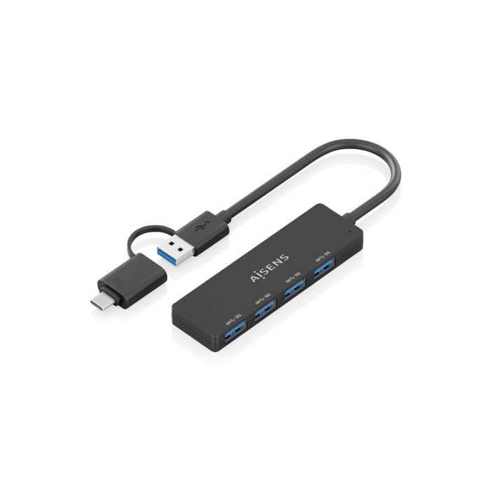 AISENS - HUB USB 3.1 USB-C USB-A, USB-C/M+USB-A/M-4xTIPO A/H, NEGRO, 15CM