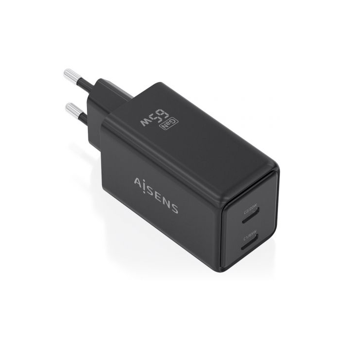 AISENS - CARGADOR GaN 65W, 2xUSB-C PD3.0 QC4.0, NEGRO
